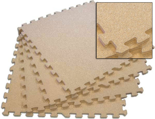 Real Cork material on top of EVA foam. You can use these on the walls as bulletin boards or on the ground as stunning flooring. These Real Cork mats have a real natural cork on top, so be wary of water unless you seal the surface of the mats. The real natural cork has the same properties as any cork material and will absorb water.