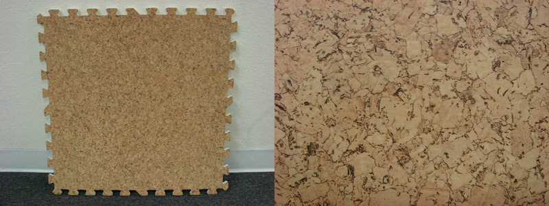 Real Cork material on top of EVA foam. You can use these on the walls as bulletin boards or on the ground as stunning flooring. These Real Cork mats have a real natural cork on top, so be wary of water unless you seal the surface of the mats. The real natural cork has the same properties as any cork material and will absorb water.